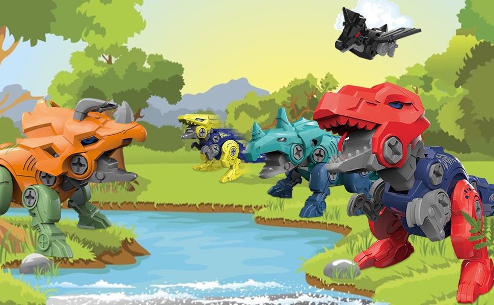 Amazon Com 5 In 1 Dinosaur Transformer Toys Take Apart Robot Dinosaur Toys For Kids 3 5 Year Old Stem Dinosaur Building Kit Christmas Birthday Gift For Toddlers Boys Girls Toys Games